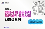 클릭평택 김용석 기자 / 평택시(시장 정장선)는 다음 달 26일까지 ‘2026년 평택시 마을공동체 주민제안 공모사업’ 참가자를 모집한다고 밝혔다. 30일 시에 따르면 이 사업은 주민들이 스스로 만들어가는 만남과 소통의 마을 공간에서 지속이 가능한 공동체 활동을 지원하기 위해서다. 공모사업은 마을공동체를 처음 시작하는 씨앗기부터 2년 차인 성장기, 3년 차인 열매기로 진행되며 각각 200만 원, 400만 원, 700만 원 이내로 지원한다. 마을공동체의 우수한 모델을 개발하고 전파하기 위한 기획 공모에는 최대 1000만 원까지 사업비를 지원한다. 주민제안 공모사업은 평택시에 거주하거나 생활권을 영유하는 자발적인 주민 모임으로 5인 이상으로 구성돼야 하며 주민들의 참여를 바탕으로 지역의 육아, 교육, 노인, 주거환경, 문화 등 다양한 영역에서 마을의 문제를 해결하고 발전하는 공동체 활동 프로그램을 지원하게 된다. 시는 지난해 23개의 다양한 공동체 활동을 지원했으며 10월에는 다양한 공동체들이 시민들과 함께 축제를 진행했고 12월에는 성과공유회와 공동체 포럼으로 공동체의 발전 방향을 논의 한바 있다. 올해에는 최대 25개소의 공동체를 선발할 예정이다. 공모 기간은