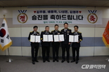 클릭평택 이석구 기자 / 평택소방서(서장 김진학)는 3일 오전 소방서 소회의실에서 승진 소방공무원에 대한 임용장 수여식을 개최했다. 수여식에는 김진학 서장을 비롯해 각 과·단장 및 부서 직원들이 참석했으며 소방경으로 승진한 김주용, 배동국, 나성돈, 김영주 4명의 임용을 축하했다. 행사는 임용 신고를 시작으로 임용장 수여 및 차담회 순으로 진행됐다. 김진학 서장은 “승진을 진심으로 축하드린다”며 “더욱 커진 책임감과 사명감을 가지고 시민의 생명과 재산을 지키는 안전지킴이로서 본연의 임무에 최선을 다해주길 바란다”고 당부했다.