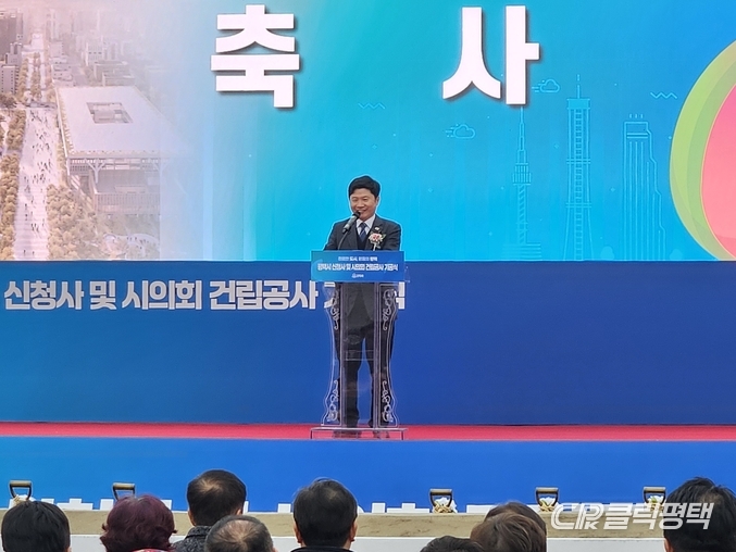정장선 시장은 기념사를 통해 “이번 신청사 기공식은 평택의 미래를 상징하는 역사적인 출발점으로, 3개 시·군 통합을 완결하는 대통합의 상징이자 대한민국 첨단 안보도시로 도약하는 평택의 비전을 담고 있다”고 말했다.
