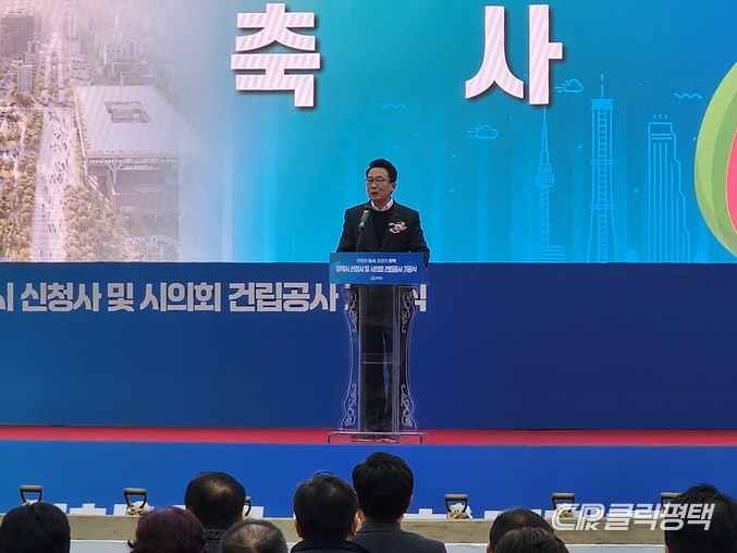 축사에서 강정구 의장은“오늘 첫 삽을 뜨는 평택시 신청사와 시의회 청사는 다가올 평택의 100년을 준비하는 미래 행정의 중심이자 시민 소통의 상징 공간이 될 것”이라며 “여러분 한 분 한 분의 기대와 응원이 모여, 행정의 효율, 시민 편의, 문화와 소통, 그리고 민주주의가 함께 숨 쉬는 진정한 시민의 집으로 완성되리라 믿는다”고 전했다.