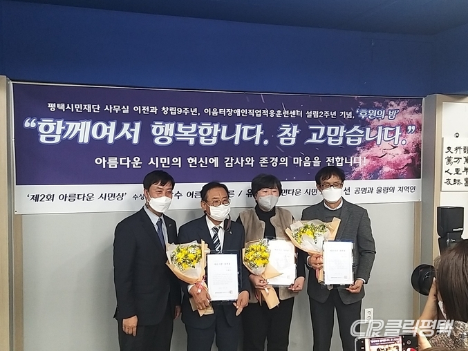 접수방법은 우편접수(평택시 평택3로 62, 1층 평택시민재단 아름다운 시민상 담당자앞) 와 이메일(ptngo@hanmail.net)을 통해서 다음 달 16일까지 보내면 된다.