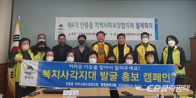 평택시 안중읍 지역사회보장협의체(공동위원장 김호경, 최승규)는 지난 19일 생활이 어려운 이웃들을 찾기 위한 복지 위기 가구 발굴 홍보 활동을 안중시장 일대에서 진행했다.