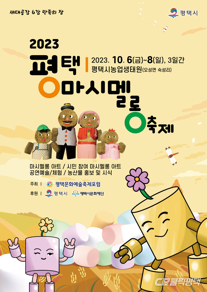 평택시문화재단 오는 10월 6일부터 8일까지 평택시농업생태원에서 ‘평택마시멜롱축제’를 개최한다고 밝혔다.