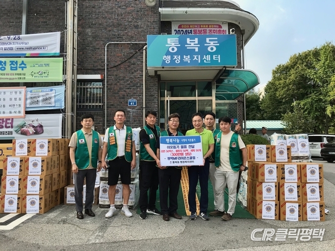 10일 통복동에 따르면 평택MF라이온스클럽은 설립 이후 평택 지역사회에 나눔 활동을 지속해서 실천하고 있으며 이날 기부한 생필품은 지역 내 기초생활수급자 및 복지 사각지대 등 취약계층 50가구에 전달됐다.