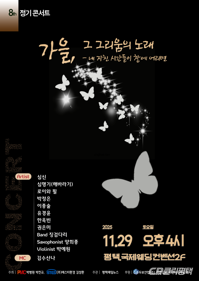 무료로 진행되는 이번 공연은 박병원, ㈜에스티환경이 주최하고 평택매일뉴스가 주관하며 두보산업(주), 선경일보, 하얀나비예술회가 후원한다.
