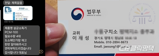 예전에도 구치소 전기 공사를 한적있는 B 씨는 의심을 하지 않았고 통화를 하던 중 S 씨가 소독기를 구매 할 수 있는 업체에 대해 알 수 있냐고 물었다.
