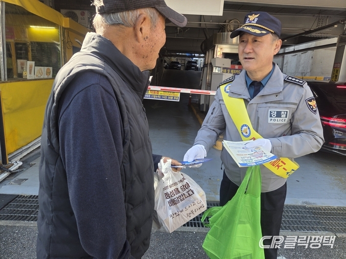 평택경찰서는 지난 27일 한국교통안전공단과 서정리 재래시장에서 고령보행자 사고 예방을 위한 캠페인을 실시했다고 밝혔다.