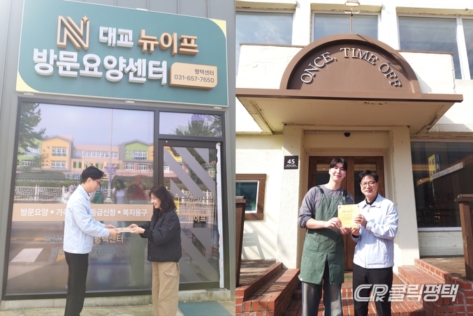 평택시(시장 정장선)는 4일 치매 친화적 지역 환경조성을 위해 대교 뉴이프 방문요양센터(평택점, 소사벌점) 2개소를 ‘치매 극복 선도단체’로 지정하고 원스타임오프 카페 평택점을 치매 안심 가맹점으로 신규 지정했다고 밝혔다.