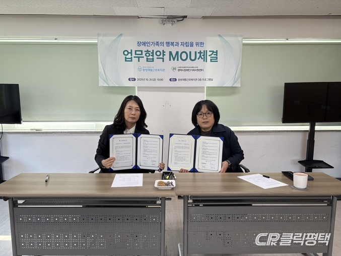 평택시장애인가족지원센터(센터장 강태숙)는 지난 3일 동방재활근로복지관(관장 박경아)과 상호 신뢰를 바탕으로 양 기관의 교류사업을 발전시키기 위한 업무협약(MOU)을 체결했다고 밝혔다.