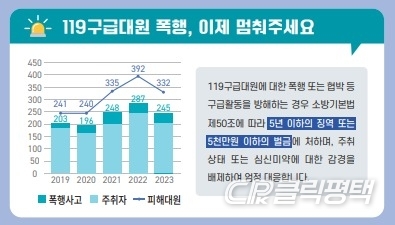 이에 송탄소방서는 구급대원 폭행 방지를 위해 경찰과의 공조 체계를 강화하고 폭력행위 발생 시 법과 원칙에 따라 강력히 대응하고 있으나 여전히 현장에서는 폭력행위가 근절되지 않고 있어 개선이 시급한 상황이다.