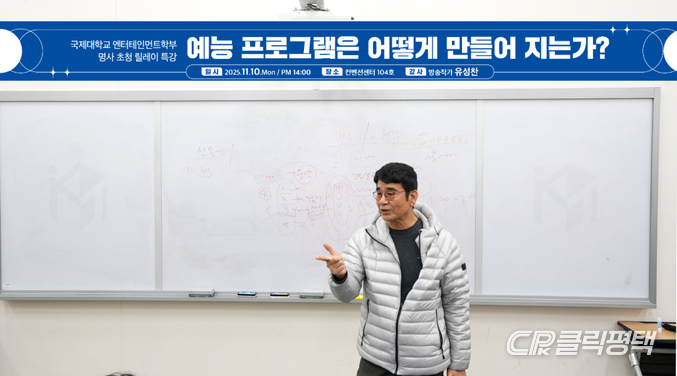 12일 국제대에 따르면 이번 특강은 ‘방송 예능의 시대는 끝났다’라는 주제로 진행됐으며 예능·토크쇼·버라이어티 프로그램의 전성기를 이끌었던 유성찬 방송작가가 현 방송·콘텐츠 산업의 변화와 미래 전략에 대해 강연을 펼쳤다.