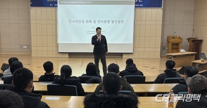 김수우 고려대학교 통일외교학부 박사가 지난 18일 평택대학교 E컨번전스홀에서 ‘전시작전권 회복과 한미동맹 발전’을 주제로 특별 강연을 진행했다.