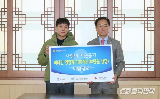 비엠평택(대표 김보미)은 지난 18일 평택시청 대외협력실에서 비타민영양제 100개(100만원 상당)을 평택행복나눔본부로 전달했다.