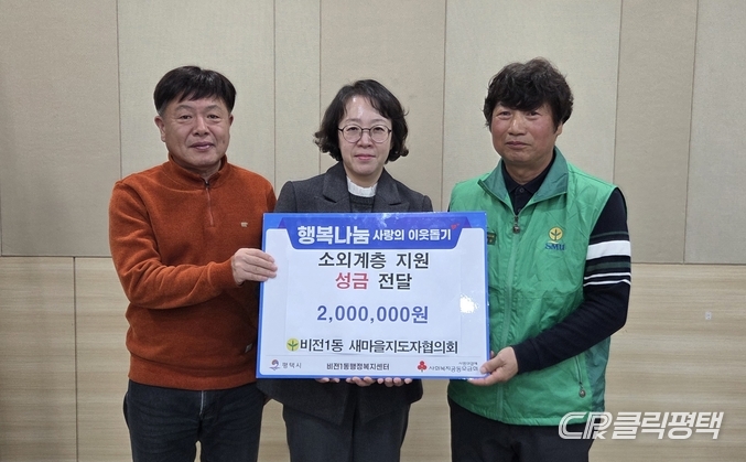 평택시 비전1동 새마을지도자협의회(회장 이재규)는 지난 11일 비전1동 행정복지센터(동장 현경)에 이웃돕기 성금 200만원을 기탁했다.