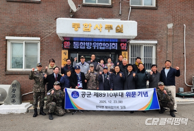 평택시 현덕면 방위협의회(회장 이창헌)는 연말연시를 맞아 지난 23일 지역 내 군부대(공군 제8910부대, 대대장 김정아)를 방문해 장병들에게 위문품을 전달하고 격려의 뜻을 전했다.