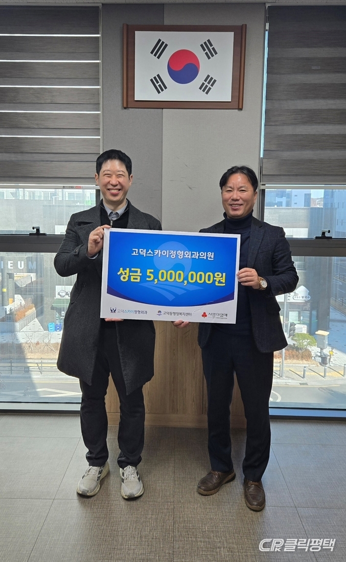 평택시 고덕동 소재 고덕스카이정형외과의원(원장 김성민,최종원)은 지난 31일 어려운 이웃들을 위해 사용해달라며 성금 500만원을 고덕동행정복지센터에 기탁했다.
