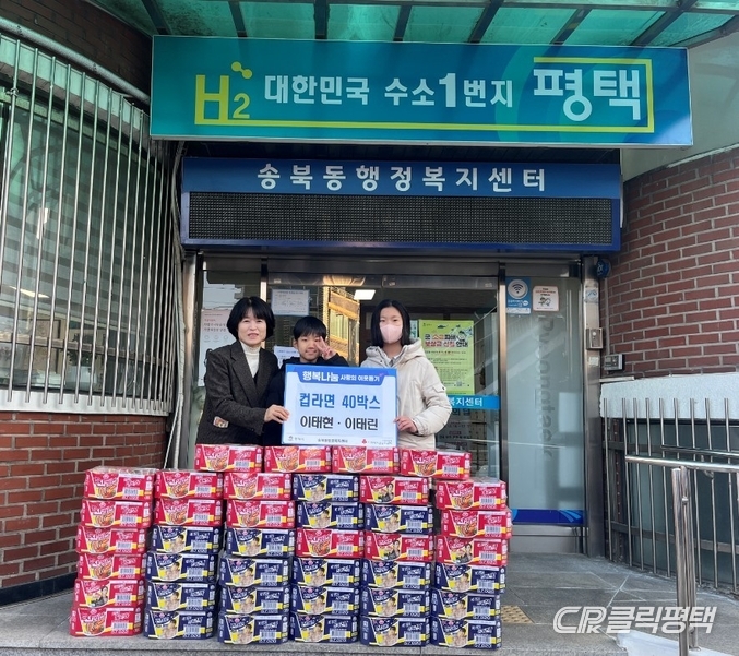 송북동행정복지센터는 2일 이태린(서재초6), 이태현(서재초3) 어린이가 연초를 맞아 어려운 이웃 전달해 달라며 컵라면 40박스를 기탁했다고 밝혔다.