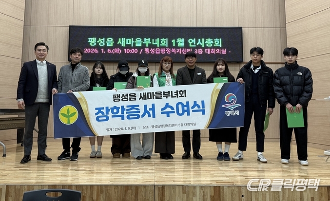 평택시 팽성읍 새마을부녀회(회장 박성애)는 지난 6일 팽성읍 행정복지센터에서 ‘2026년 연시총회’를 개최하고 학생들에게 장학금을 수여했다.