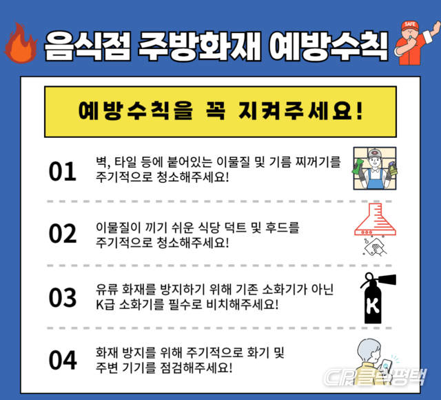 홍의선 서장은 “음식점 주방 화재는 짧은 시간 안에 큰 피해로 이어질 수 있다”며 “관계인들께서는 K급 소화기 비치 여부를 반드시 확인하고, 주방 구조와 조리설비에 따라 설치 대상이 되는 소방시설을 점검해 안전한 영업 환경 조성에 적극 협조해 주시길 바란다”고 당부했다.