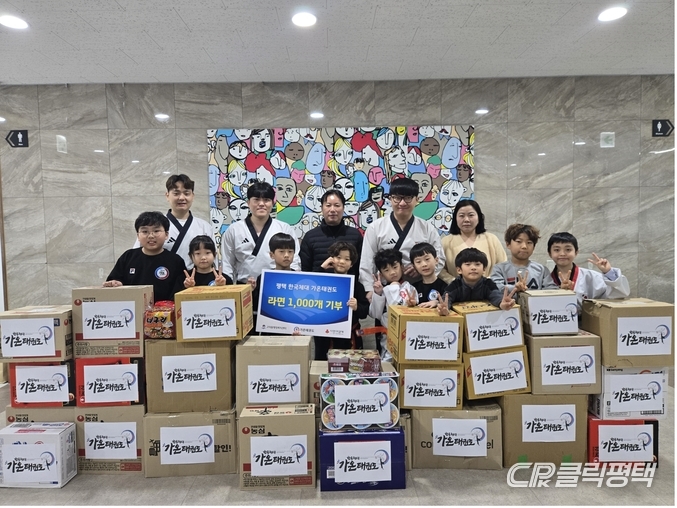 평택시 고덕동에 소재한 한국체대 가온태권도장에서 지난 15일 원생들이 십시일반 모은 라면 1000개를 고덕동 행정복지센터에 전달했다.