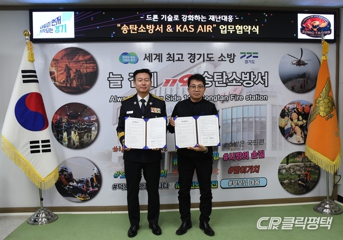 송탄소방서(서장 홍의선)는 지난 21일 소방서에서 드론 전문 교육기관인 KAS AIR와 재난 대응 및 구조 역량 강화를 위한 업무협약(MOU)을 체결했다고 밝혔다.