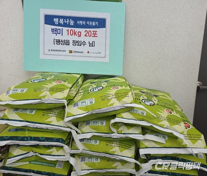팽성읍 행정복지센터는 지난 3일 팽성읍 송화1리 주민 장임수 씨가 어려운 이웃에 전달해 달라고 백미 20포(10kg)를 기부했다고 밝혔다.