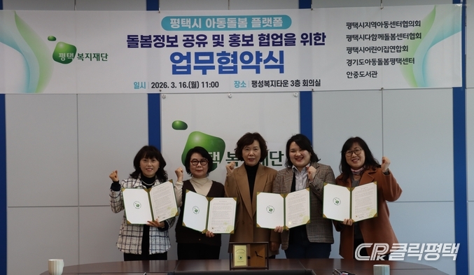 평택복지재단(대표이사 신승연)은 지난 16일 팽성복지타운에서 평택시 지역 내 아동돌봄 관련 5개 유관기관과 ‘평택시 아동돌봄 플랫폼’의 안정적인 운영 및 활성화를 위한 업무협약을 체결했다고 밝혔다.