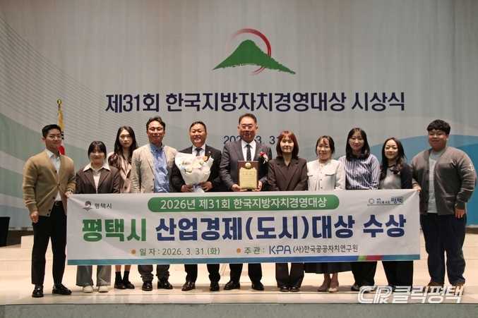 평택시(시장 정장선)는 지난 달 31일 (사)한국공공자치연구원이 주관한 ‘2026년 제31회 한국지방자치경영대상’에서 산업경제(도시) 부문 대상을 받았다고 밝혔다.