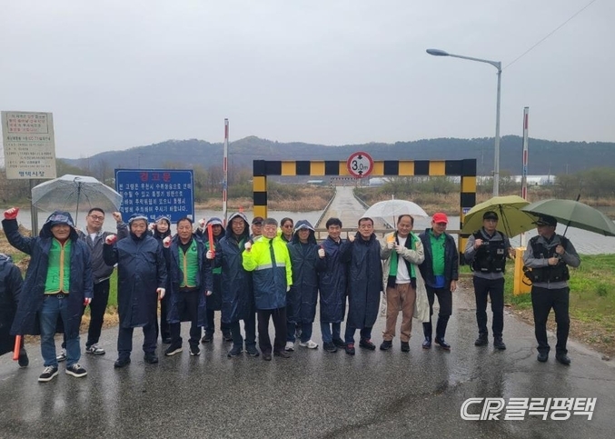 평택시 진위면 자율방재단은 지난 9일 방재단원과 공무원 등 30여 명이 참여한 가운데 진위천 세월교에서 집중호우 대비 실제 상황을 가상한 교량 통제 모의훈련을 실시했다.