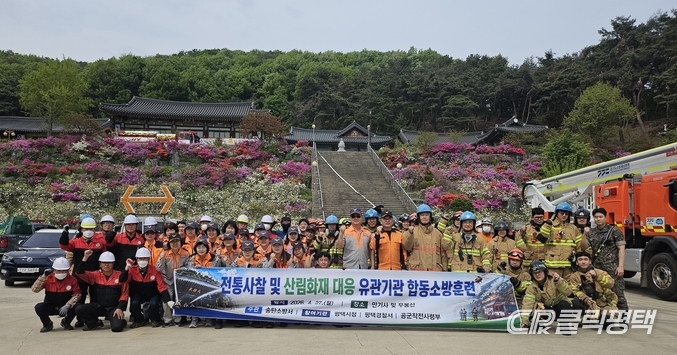 송탄소방서(서장 홍의선)는 지난 27일 만기사 대웅전 및 무봉산 일원에서 전통사찰 화재와 산림 확산 상황에 대비한 유관기관 합동 현지적응훈련을 실시했다고 밝혔다.