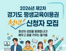 클릭평택 김용석 기자 / 평택시(시장 정장선)는 27일부터 ‘2026년 제2차 경기도 평생교육 이용권’ 신청 접수를 받는다고 밝혔다. 교육 이용권은 경제적 여건에 따른 교육 격차를 완화하고 청년들의 자기계발을 지원하기 위해서다. 이번 사업은 경제적 여건과 관계없이 학습 참여를 지원하는 평생교육 이용권으로 신청대상자는 경기도에 주민등록상 주소를 둔 19~39세 청년이며 선정 시 1인당 35만 원의 교육비(수강료 및 교재비)를 지원받는다. 이용권은 전국 평생교육 이용권 등록기관(경기도: 739개소, 평택시: 28개소)에서 사용할 수 있다. 특히 올해부터 국가장학금 수혜자도 중복 지원이 가능해짐에 따라 저소득층 대학생 등 청년층의 학습 기회가 더욱 확대될 전망이다. 신청은 경기도 평생교육이용권 누리집(www.ill.gg.go.kr)을 통해 온라인으로 가능하며 선정자는 본인 명의 카드에 포인트 형태로 지원금을 받는다. 시 관계자는 “청년들이 경제적 부담 없이 배움을 이어갈 수 있는 계기가 되길 바란다”며 “앞으로도 평생학습 참여 기회를 지속적으로 확대해 나가겠다”고 전했다. 문의는 경기도 평생교육이용권 상담센터(1522-6804), 평택시 교육국 평생학습과(031-