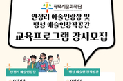 클릭평택 이석구 기자 / (재)평택시문화재단(대표이사 이상균)은 오는 7일까지 2023년 안정리 예술인광장과 팽성예술인창작공간에서 진행되는 문화예술교육프로그램 운영을 할 우수한 강사를 공개 모집한다고 밝혔다. 31일 재단에 따르면 안정리예술인광장은 지난해 ‘안정리스쿨’을 운영함으로써 각 분야별 전문가와 함께 쿠킹클래스, 목조각, 사진촬영 등 다양한 프로그램 운영으로 지역민들의 높은 참여율과 관심을 받았다. 팽성예술인창작공간은 수준 높은 강좌 구성으로 ‘수예교실’, ‘목공교실’, ‘전통공예교실’ 등 꾸준한 인기를 끌고 있다. 모집인원 및 분야는 안정리 예술인광장 2개 분야 4명(쿠킹클래스(제과제빵, 요리)), 컬처&아트클래스(문화예술, 생활문화 등)), 팽성예술인창작공간 5개 분야, 5명(목공교실, 수예교실, 전통교실, 공예교실, 드로잉교실)을 각각 모집한다. 1차 서류전형 합격자에 한해 2차 면접을 진행하며 최종 합격자는 2월 셋째주와 넷째주에 홈페이지 및 개별통보로 안내할 예정이다. 자세한 사항은 평택시문화재단 홈페이지(www.pccf.or.kr/main.do) 및 재단 블로그(blog.naver.com/pccf_2020)를 통해 확인할 수 있다.