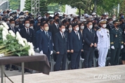 클릭평택 이석구 기자 / 평택시(시장 정장선)는 지난 6일 평택호 현충탑에서 순국선열과 호국영령들을 추모하기 위해 제67회 현충일 추념식을 거행했다. 7일 시에 따르면 이번 추념식에는 정장선 시장을 비롯해 홍선의 시의장, 9개 보훈단체장, 국‧도‧시의원, 기관‧사회단체장, 국가유공자 및 가족, 시민 등 600여명이 참석했다. 이번 추념식은 순국선열 및 호국영령에 대한 묵념을 한 뒤, 헌화와 분향, 정장선 시장의 추념사, 전몰군경미망인회 이은숙 지회장의 헌시낭송, 현충일 노래 순으로 진행됐다. 추념사에서 정장선 시장은“우리가 현재 누리고 있는 자유와 평화는 순국선열과 호국영령의 헌신과 희생이 있었기에 가능했다”며 “국가유공자와 가족이 존경받는 사회를 만드는데 최선을 다 하겠다”고 강조했다.