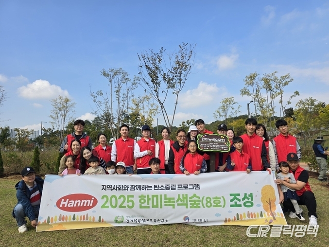 평택시(시장 정장선)와 한미그룹은 지난 25일 함박산 중앙공원에서 한미그룹 임직원과 가족 등 50여 명이 참여한 가운데 ‘한미녹색숲(8호)’ 조성 행사를 개최했다.