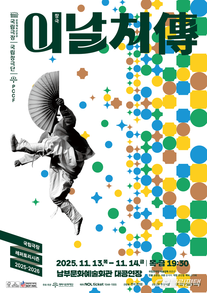 (재)평택시문화재단(대표이사 이상균)은 다음 달 13일과 14일 오후 7시 30분, 국립창극단의 창작 창극 ‘이날치傳’을 평택 남부문화예술회관 대공연장에서 선보인다고 밝혔다.