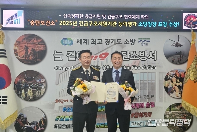 평택시 송탄보건소는 23일 재난 및 응급상황 대응 역량을 인정받아 ‘2025년 긴급구조지원기관 최우수기관’으로 선정되고 표창을 받았다고 밝혔다.