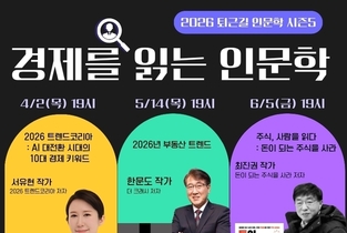 클릭평택 김용석 기자 / 평택시립안중도서관은 시민들의 경제·사회 변화에 대한 이해를 돕고 인문학적 소양을 높이기 위해 다음 달부터 오는 6월까지 ‘퇴근길 인문학 시즌5’를 운영한다고 밝혔다. 17일 도서관에 따르면 이번 강연은 ‘경제를 읽는 인문학’을 주제로 총 3회에 걸쳐 진행되며 각 분야 전문가를 초청해 2026년 트렌드, 부동산, 주식 등 시민들의 실생활과 밀접한 경제 이슈를 인문학적 관점에서 풀어낼 예정이다. 첫 번째 강연은 다음 달 2일 오후 7시, 안중도서관 1층 공간이음에서 ‘2026 트렌드코리아’ 공저자인 서유현 작가를 초청해 ‘2026 트렌드코리아: AI 대전환 시대의 10대 경제 키워드’를 주제로 강의를 진행한다. 두 번째 강연은 오는 5월 14일 오후 7시, 한문도 작가가 ‘2026년 부동산 트렌드’를 주제로 진행한다. 세 번째 강연은 오는 6월 5일 오후 7시, 최진권 작가의 ‘주식, 사람을 읽다: 돈이 되는 주식을 사라’를 주제로 시민들과 만날 예정이다. 강연 신청은 강연별로 순차 진행되며 안중도서관 누리집에서 가능하다. 도서관 관계자는 “이번 퇴근길 인문학 강연이 시민들이 변화하는 경제 흐름을 더 쉽게 이해하고 일상에서 인문학적 시각